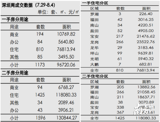 表1:深圳周成交數(shù)據(jù)分類統(tǒng)計表(7.29-8.4)