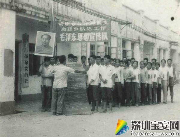 一張泛黃的老照片中,大多數(shù)人物都處在風(fēng)華正茂的年齡,赤著腳,舉著宣傳的橫幅,為血絲蟲(chóng)病防治工作進(jìn)行宣傳,生動(dòng)地再現(xiàn)了“赤腳醫(yī)生”年代傳染病高居不下,生活艱苦不易,缺醫(yī)少藥的場(chǎng)景。盡管當(dāng)時(shí)的醫(yī)療設(shè)備十分簡(jiǎn)陋,除了一個(gè)藥箱,幾片普通的藥片,一支針筒,幾塊紗布,別的就少得可憐??稍倏嘣匐y,這些赤腳醫(yī)生們,仍是盡職盡責(zé),滿腔熱情地為人民服務(wù)。