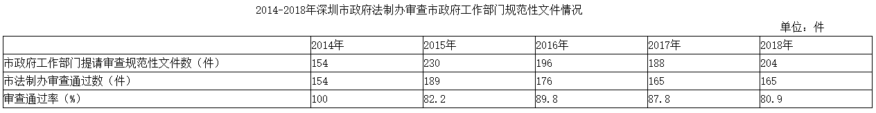 2014-2018年深圳市政府法制辦審查市政府工作部門規(guī)范性文件情況