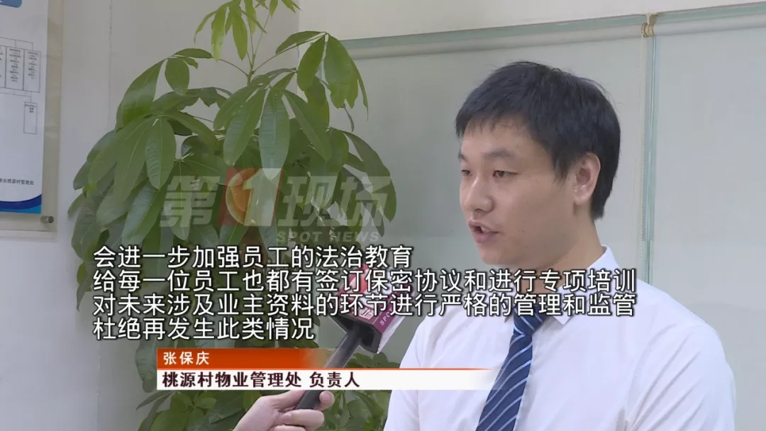 今天記者來到桃源小區(qū)物業(yè)管理處,負(fù)責(zé)人介紹稱在今年6月確實有兩名員工在工作期間被警方帶走,在事情發(fā)生后公司才得知兩名員工涉嫌泄漏業(yè)主個人資料。
