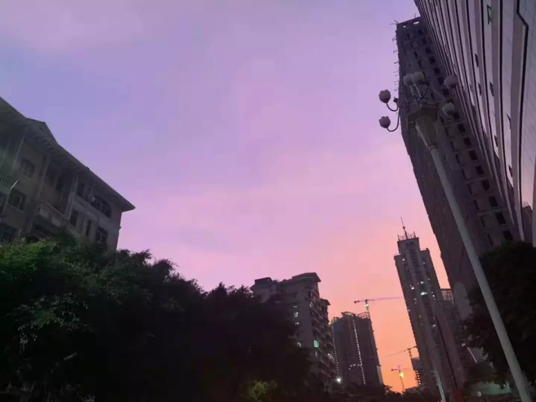 #深圳晚霞#應(yīng)該就是在氣象上所說的臺風(fēng)來臨前的“反暮光”。它一般在臺風(fēng)來襲前一兩天的日落時分出現(xiàn),西方地平線下發(fā)出數(shù)條放射狀、紅藍(lán)相間的光芒,發(fā)射到天頂,然后收斂于東方與太陽對稱的地方,映紅整個天空。