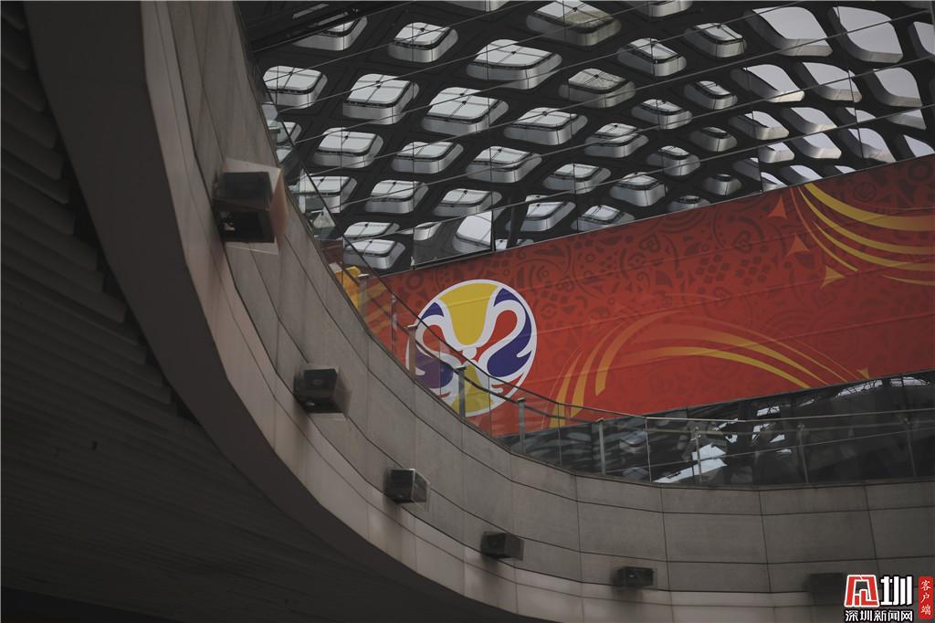 深圳灣體育中心外部,宣傳牌已經(jīng)立起來。