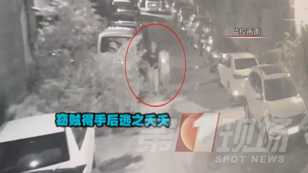 從小區(qū)的監(jiān)控視頻可以看到,就在陳先生上樓沒多久,兩名鬼鬼祟祟的男子打著手電筒,在他的車內(nèi)倒騰了一番,最后跑到路邊,打了輛出租車揚(yáng)長而去。