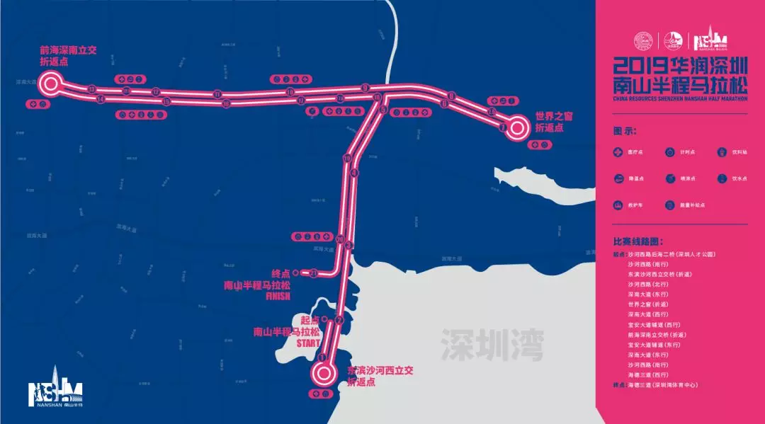 值得一提的是,今年南馬的路線較去年略有調(diào)整,賽事線路整體呈T字形,賽道起點(diǎn)在沙河西路后海二橋(深圳人才公園東門),賽道終點(diǎn)在海德三道(深圳灣體育中心),賽道主體由沙河西路和深南大道組成一縱一橫,途徑深圳灣總部經(jīng)濟(jì)片區(qū)、高新技術(shù)園、大沙河生態(tài)長(zhǎng)廊、世界之窗、南頭古城等多個(gè)地標(biāo)性建筑,不僅彌補(bǔ)了往年沒有經(jīng)過深圳灣海域的遺憾,讓選手在賽跑之余一覽灣區(qū)海景,更向選手與觀眾充分展示南山自然人文科技之美。