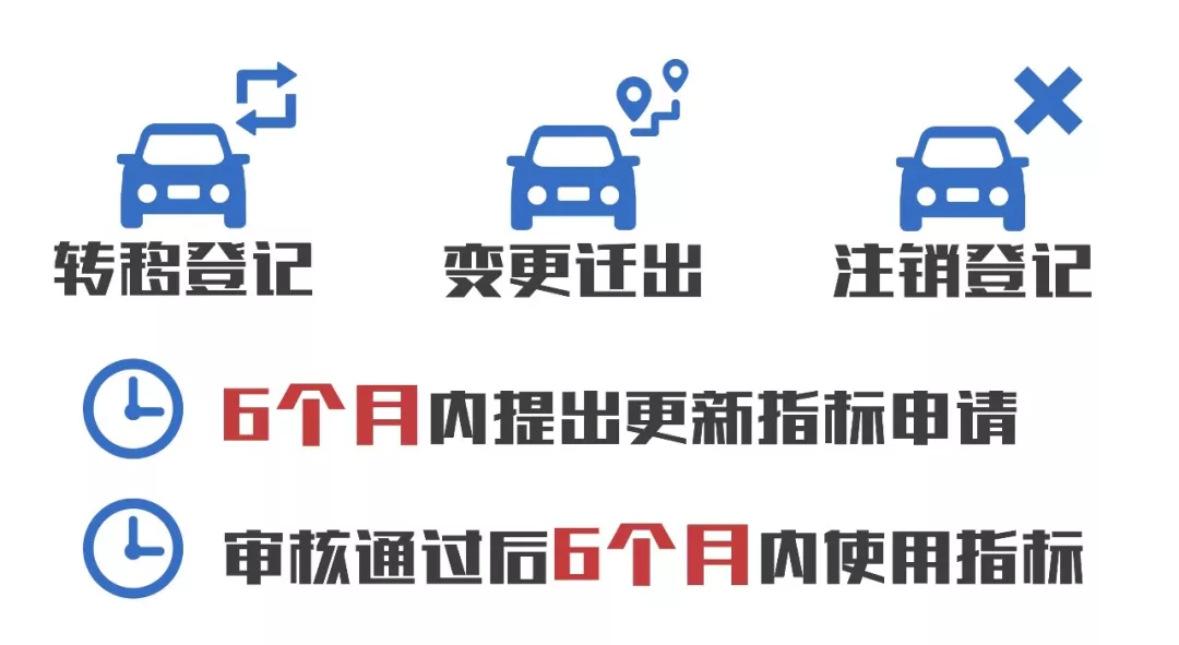 更新指標(biāo):小單位或者個(gè)人需要更新小汽車的,應(yīng)當(dāng)自完成轉(zhuǎn)移登記、注銷登記或者遷出本市之日起6個(gè)月內(nèi)提出更新指標(biāo)申請。