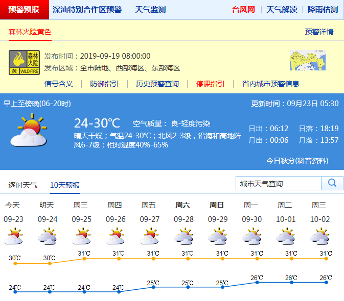 深圳這周晴天多云為主 濕度略有增加 今日最高溫30℃
