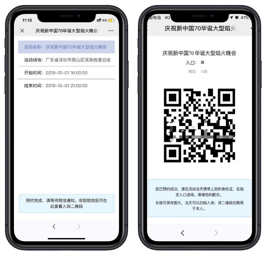 4.預(yù)約成功后將收到短信,預(yù)約頁(yè)面將生成二維碼。請(qǐng)?zhí)崆皩⒍S碼妥善保存,活動(dòng)當(dāng)天市民需憑此二維碼及本人身份證入場(chǎng)(二維碼轉(zhuǎn)借他人無(wú)效)。