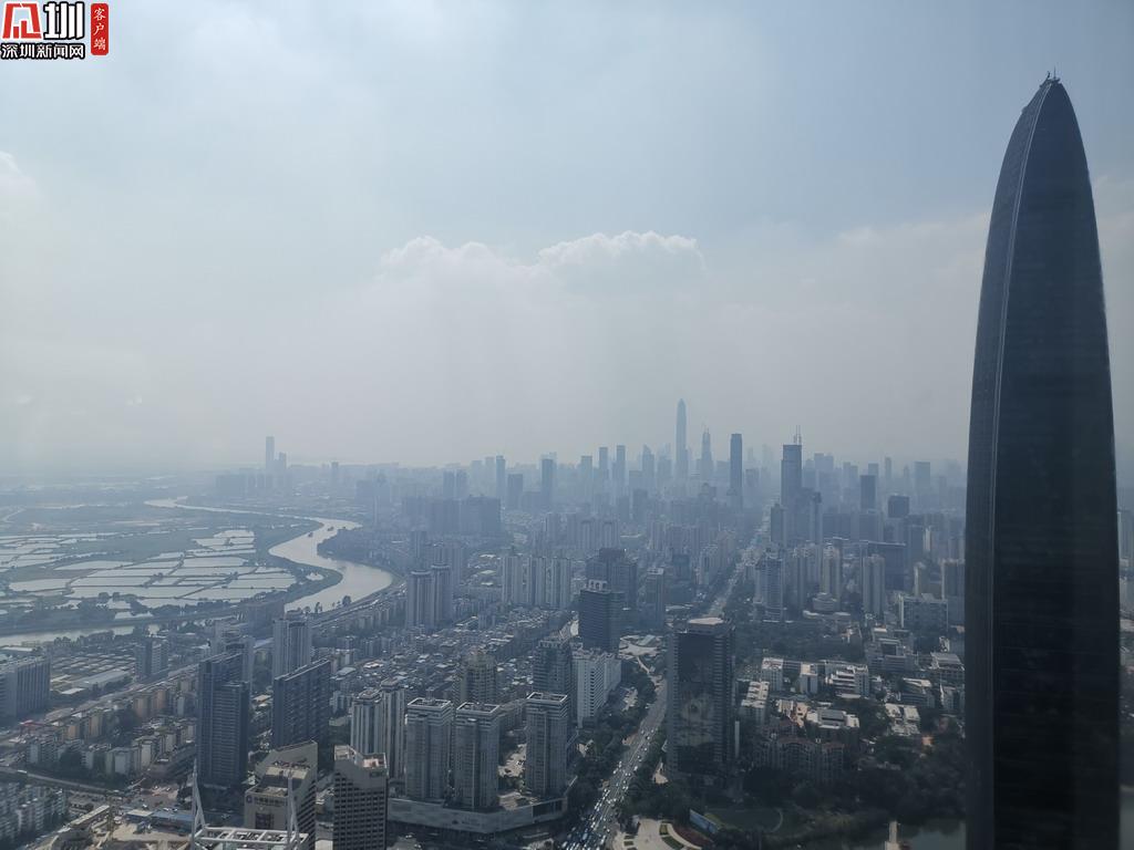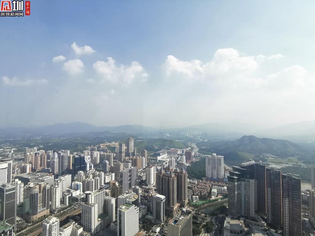 站在地王觀光?深港之窗,俯瞰深圳。