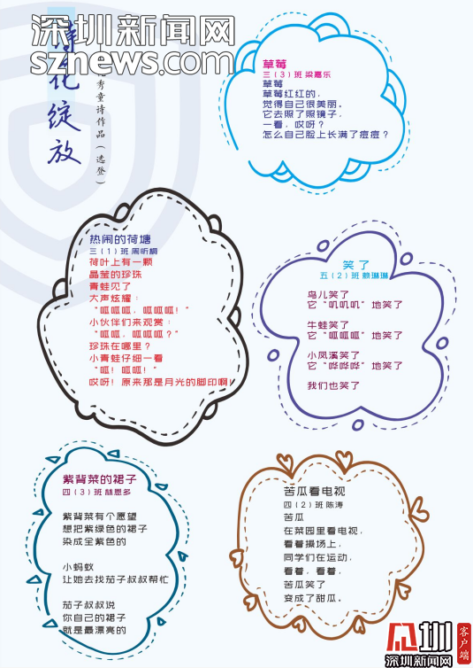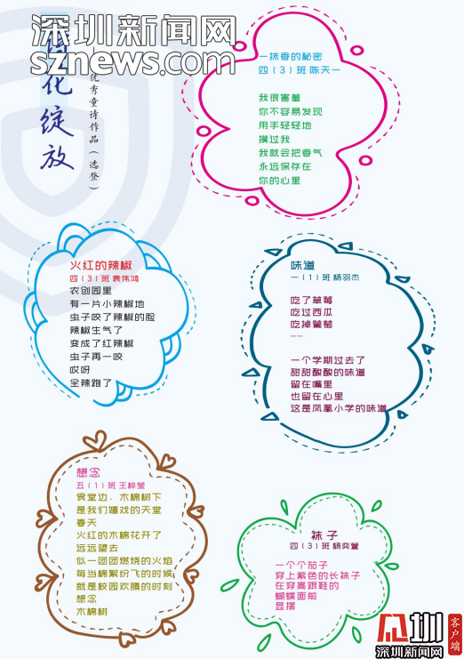 編委會(huì)的老師感慨,《童詩(shī)鳳凰》這本詩(shī)集是扎根于詩(shī)意校園的土壤結(jié)出的詩(shī)花。是鳳凰的孩子們?cè)诤商吝?、在草莓地、在蘑菇亭、在好玩的地方用心聆?tīng)大自然后,最真實(shí)最動(dòng)人的表達(dá)。