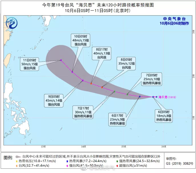 今年第19號臺風(fēng)“海貝思”(熱帶風(fēng)暴級)(英文名稱:Hagibis;名字來源:菲律賓;名字意義:褐雨燕)于今天凌晨2點(diǎn)鐘在西北太平洋洋面上生成,早晨8點(diǎn)鐘其中心位于美國關(guān)島偏東方約1180公里的西北太平洋洋面上。根據(jù)目前的預(yù)報,它會早早拐彎北上,和我們一點(diǎn)關(guān)系都沒有。
