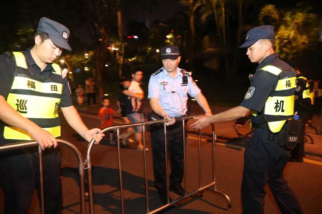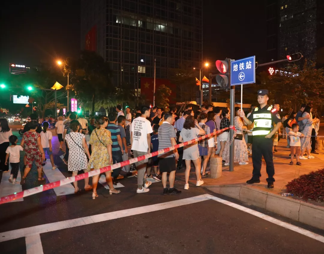 “同一個時間、同一個地點,如何保證十幾萬人看完燈光秀,安全、有序、祥和地離開,這不是一個簡單的安保工作,是一個系統(tǒng)工程。”福田區(qū)副區(qū)長、公安分局局長江峰表示。本次燈光秀疏導工作在國慶節(jié)前已做了預案,警力每天下午五點半就全部上崗,保證所有的閘口人員就位,封控福中三路和深南大道輔道,利用隔離帶當鐵馬,人流北進南出?!拔覀兺ㄟ^在廣場各出入口及周邊路段,加裝地鐵、公交指示牌,全程指引疏導人群走向。對市民中心地鐵站六個出入口進行單循環(huán)規(guī)劃,所有觀眾進場都是單行線,這樣人群不會形成對沖,保證疏導有序進行?!备L锕卜志指本珠L譚慶彬介紹道。