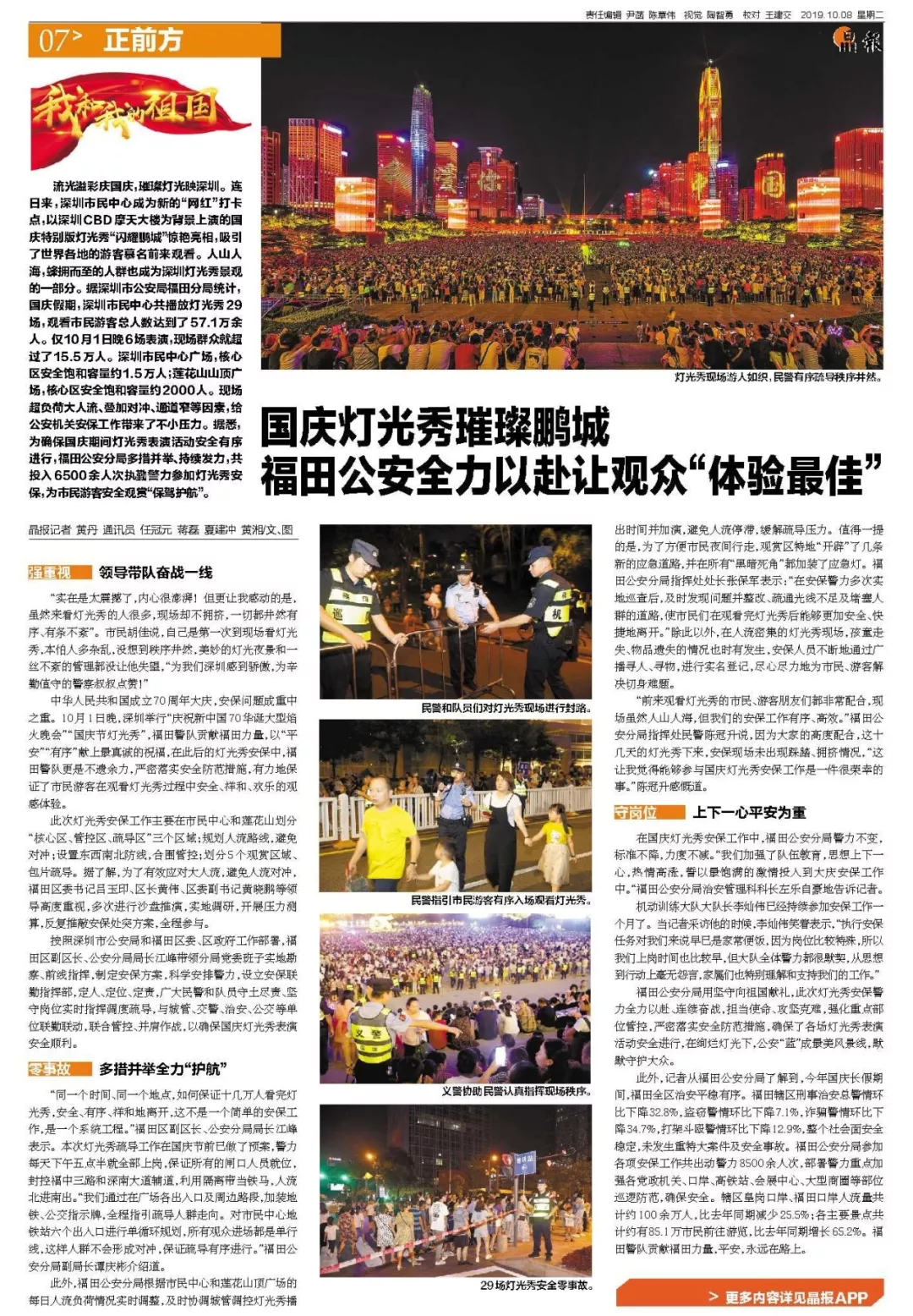 國慶燈光秀璀璨鵬城,福田公安全力以赴讓觀眾“體驗最佳”