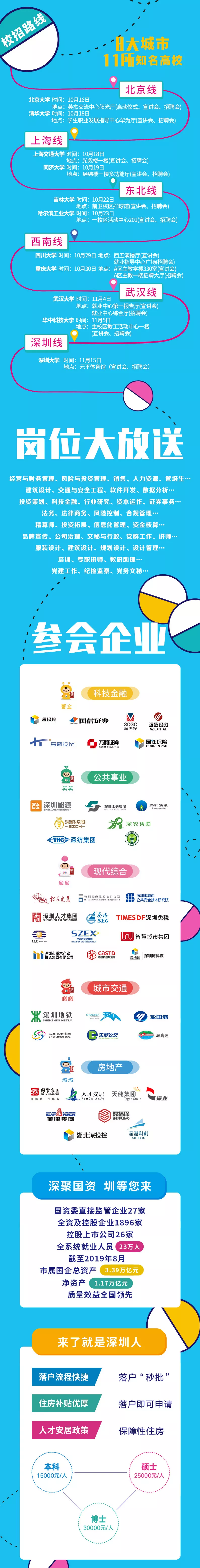 見圳客戶端·深圳新聞網2019年10月10日訊 據“深圳國資”微信公眾號消息,深圳市屬國企開啟“花式”組團校招模式,“菁英聚鵬城”深圳市屬國企2020校園招聘會來了!