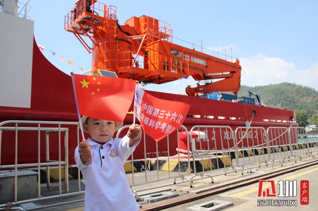 10月15日上午是公眾開放日時間,小觀眾記錄下“雪龍2”號的英姿。