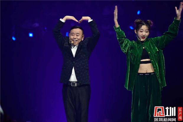 潘長江在臺(tái)上與一位抖音創(chuàng)作者互動(dòng)。