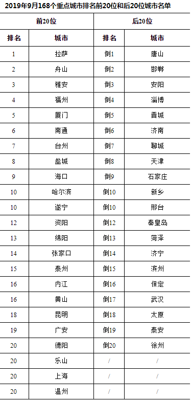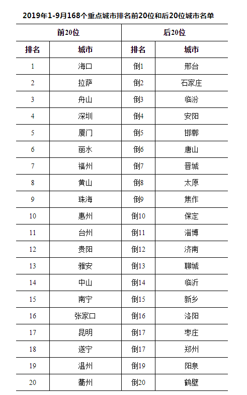 1-9月全國空氣質(zhì)量深圳排第四,前20名廣東獨(dú)占4席