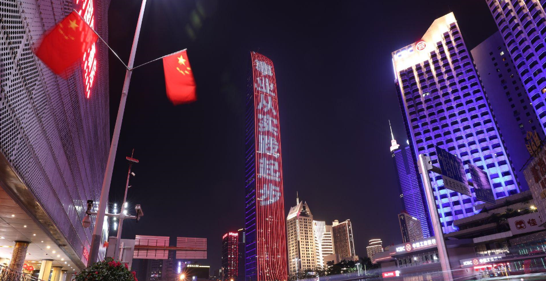 20日晚,京基100大廈和平安金融中心為“學習強國”“代言”