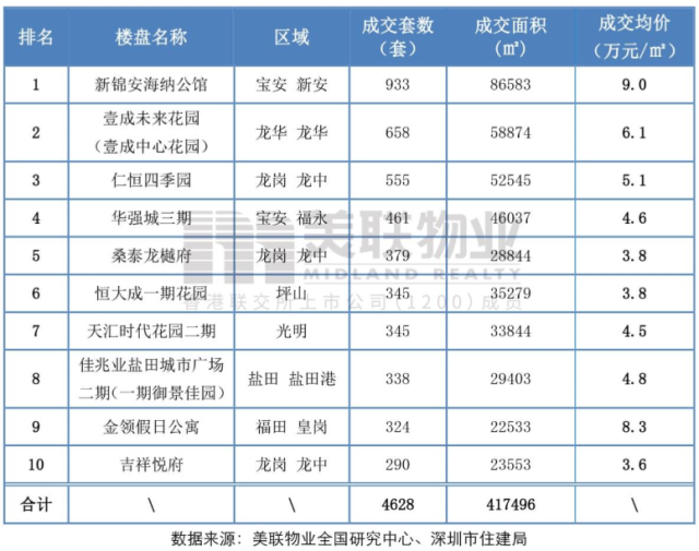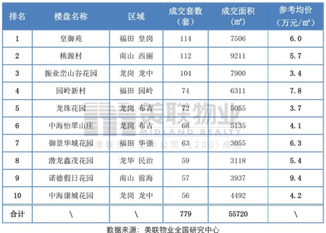 不過(guò),與新房市場(chǎng)不同的是,二手住宅成交分布比較均勻。在第三季度二手住宅成交TOP10中,前三甲分別來(lái)自福田、南山和龍崗三區(qū)。其中,福田皇崗片區(qū)的皇御苑以114套的成交量位居榜首。