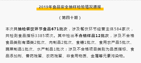 2019年食品安全抽樣檢驗(yàn)情況通報(bào)
