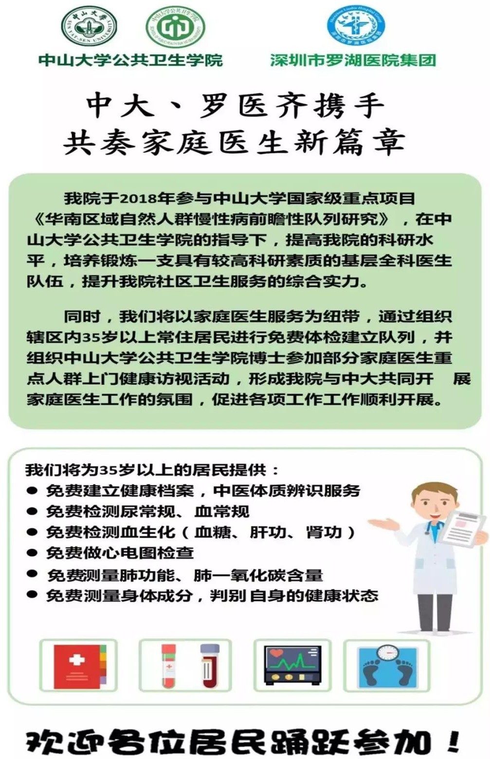 近日,羅湖醫(yī)院集團參與了中山大學(xué)國家級重點項目《華南區(qū)域自然人群慢性病前瞻性隊列研究》,將以家庭醫(yī)生服務(wù)為紐帶,通過組織轄區(qū)內(nèi)35歲以上常住居民進行免費體檢建立隊列。
