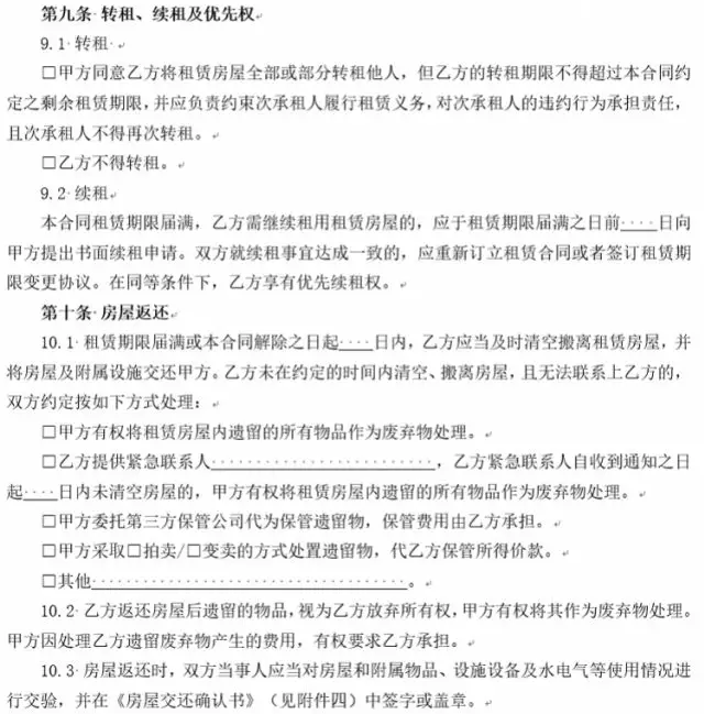 4、增設承租人下落不明時,出租人對租賃房屋內(nèi)的遺留物處理條款。實踐中,存在很多承租人無力支付租金時斷絕與出租人聯(lián)系的情形。為解決出租人無法聯(lián)系承租人時對租賃房屋內(nèi)遺留物的處理問題,新版合同增設承租人未按約定交還房屋且下落不明時遺留物的處理條款,由雙方當事人在簽訂合同時就此問題協(xié)商一致,避免出租人遭受無法收回房屋導致房屋使用價值無法實現(xiàn)的損失或者因自行處置遺留物引起糾紛、面臨侵權(quán)責任的風險,有效解決承租人下落不明時租賃房屋內(nèi)遺留物的處理問題。