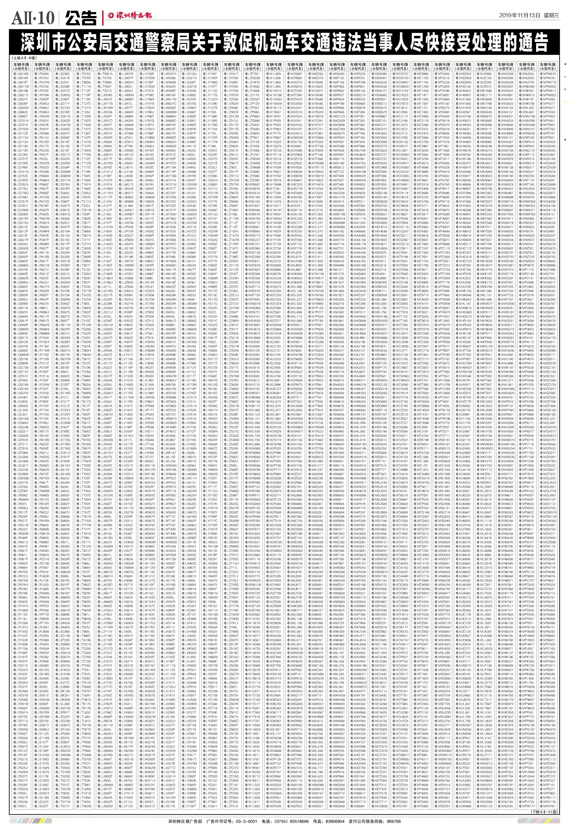 今年7月至10月初,全市機(jī)動車被“電子警察”抓拍交通違法行為1342781宗,深圳交警通過多種方式進(jìn)行交通違法行為告知,但截止至目前仍有部分機(jī)動車的非現(xiàn)場交通違法未及時處理。