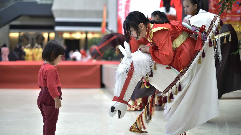 2019年1月5日,深圳灣,一位小女孩正在和父親玩耍。