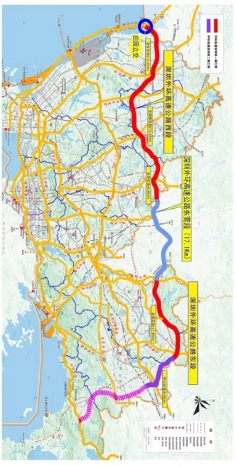 外環(huán)高速全線分為深圳段和東莞段,全長約93km(含遠期規(guī)劃里程)。
