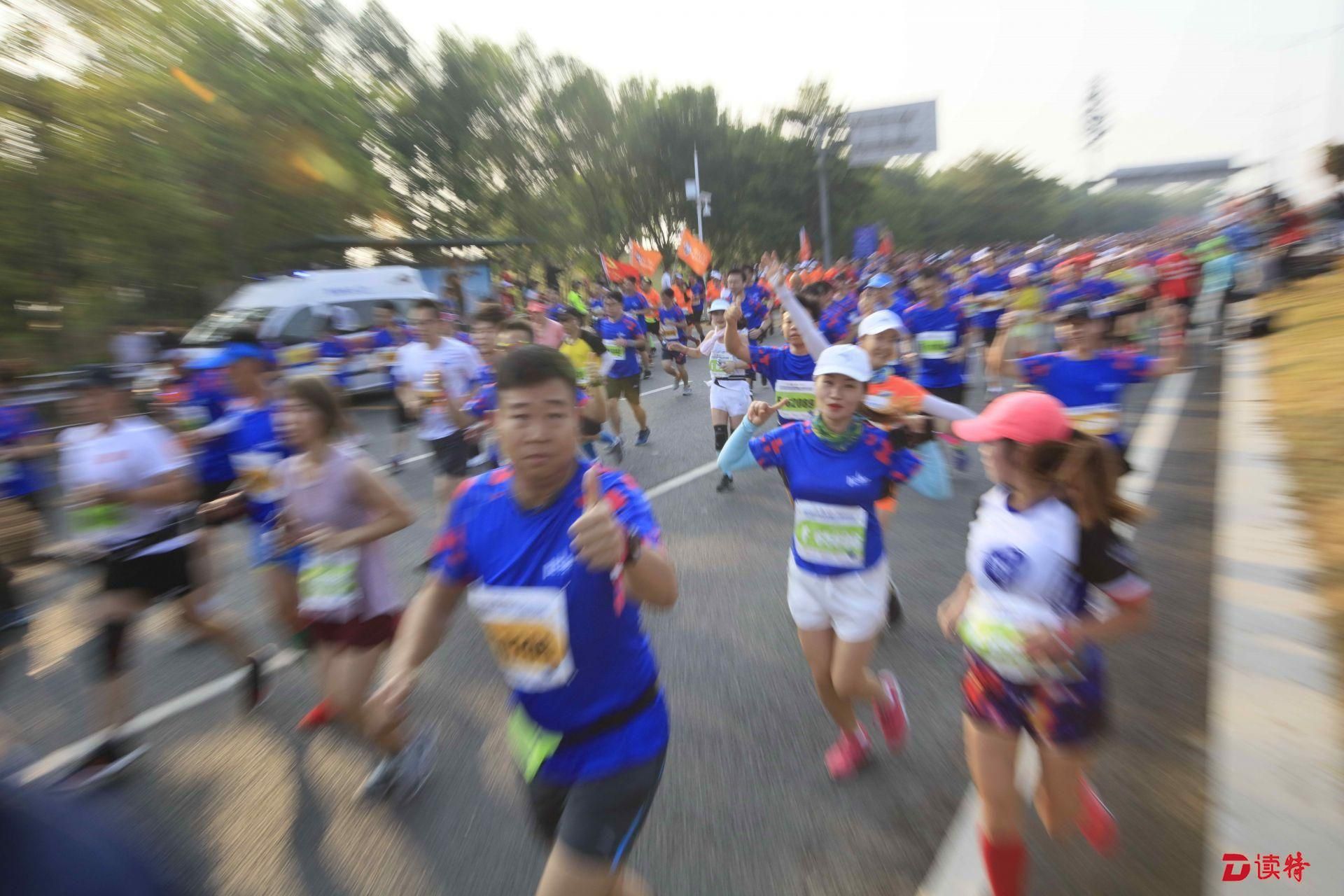 8點鳴槍,1.6萬名參賽選手準時開跑,由深圳人才公園東門出發(fā),途徑南山區(qū)多個地標建筑,向終點華潤深圳灣體育中心奔跑。經(jīng)過一番激烈的角逐,9點過,有選手率先抵達終點,男女組冠亞季軍陸續(xù)誕生。