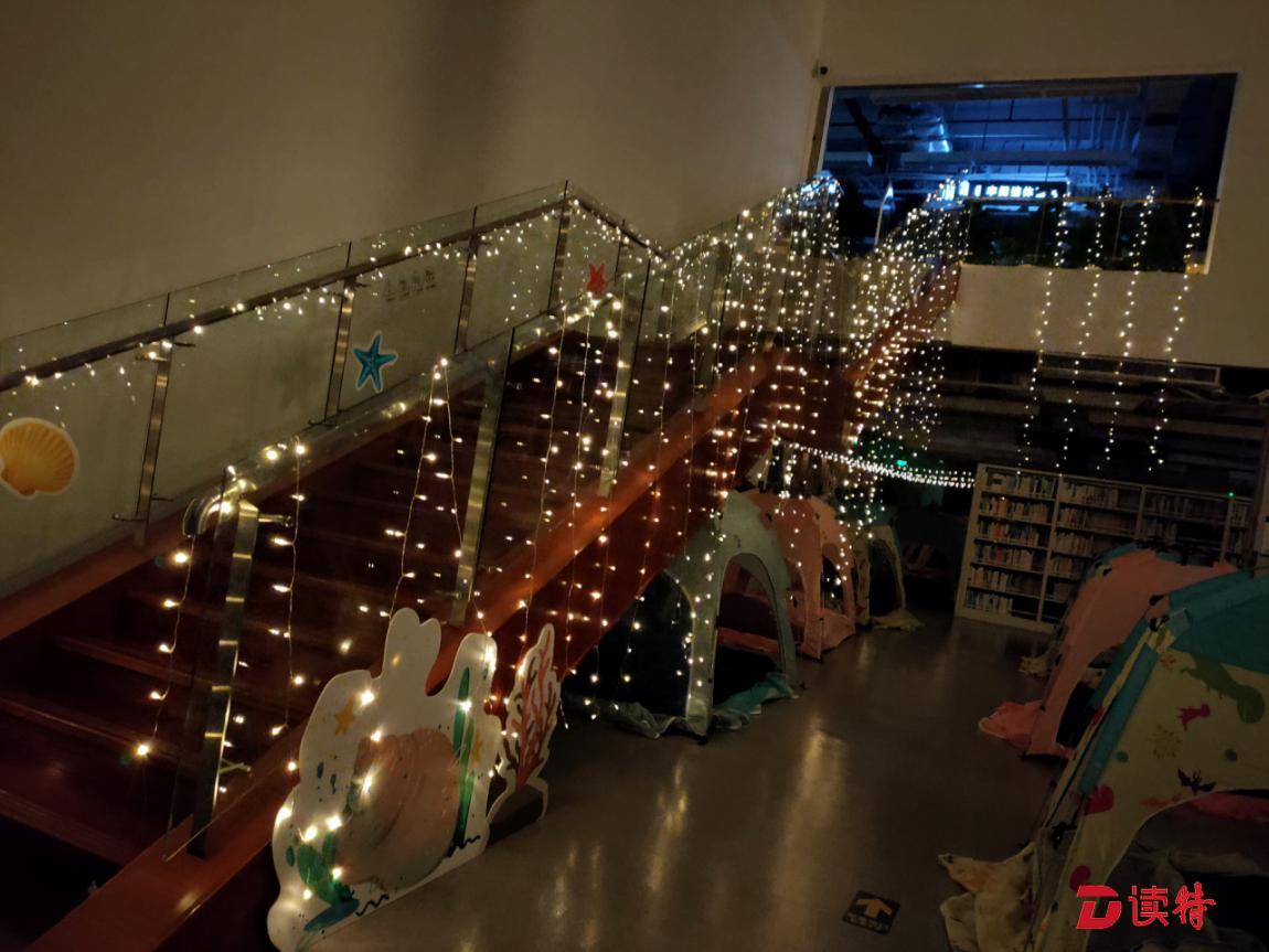 帳篷搭好了,圖書館之夜,夢幻童話夜開啟了。