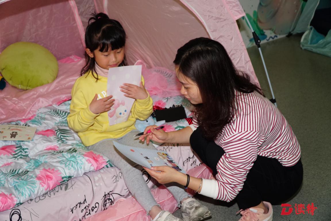 經(jīng)過茶歇小憩之后,親子游戲讓孩子們樂不可支,在呼啦圈游戲中東穿西撞,在九宮格游戲中交朋結(jié)友,在去哪兒游戲里找不著北……這一晚的熱烈在閱讀推廣人鄧歡姐姐的晚安故事中沉淀下來,靜下心來寫下給未來自己的一封信。帳篷、星燈、繪本、游戲,給這30個(gè)親子家庭營造了一個(gè)個(gè)奇妙的童話夢境。