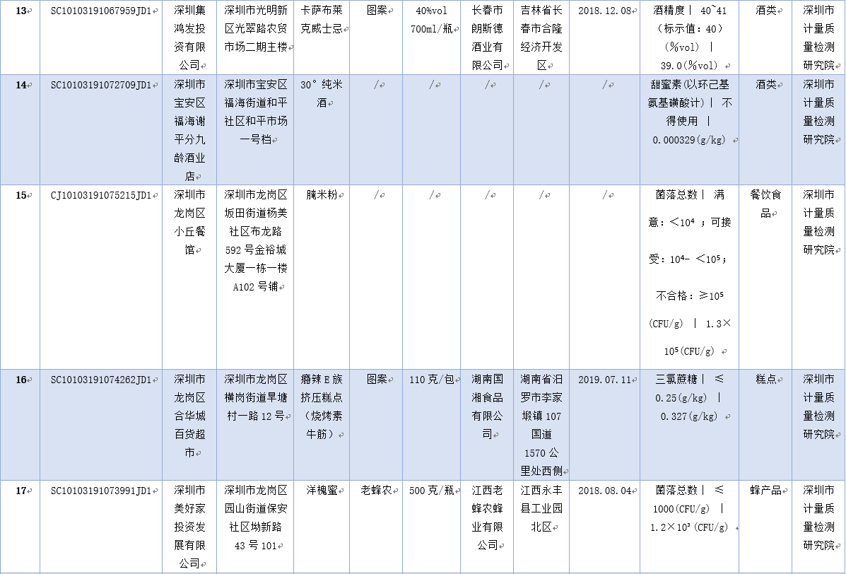 見圳客戶端·深圳新聞網(wǎng)2019年12月2日訊 為保障深圳食品消費(fèi)安全,深圳市市場(chǎng)監(jiān)督管理局于2019年8-9月組織對(duì)生產(chǎn)、流通、餐飲環(huán)節(jié)的食品開展了專項(xiàng)抽樣檢驗(yàn)工作。