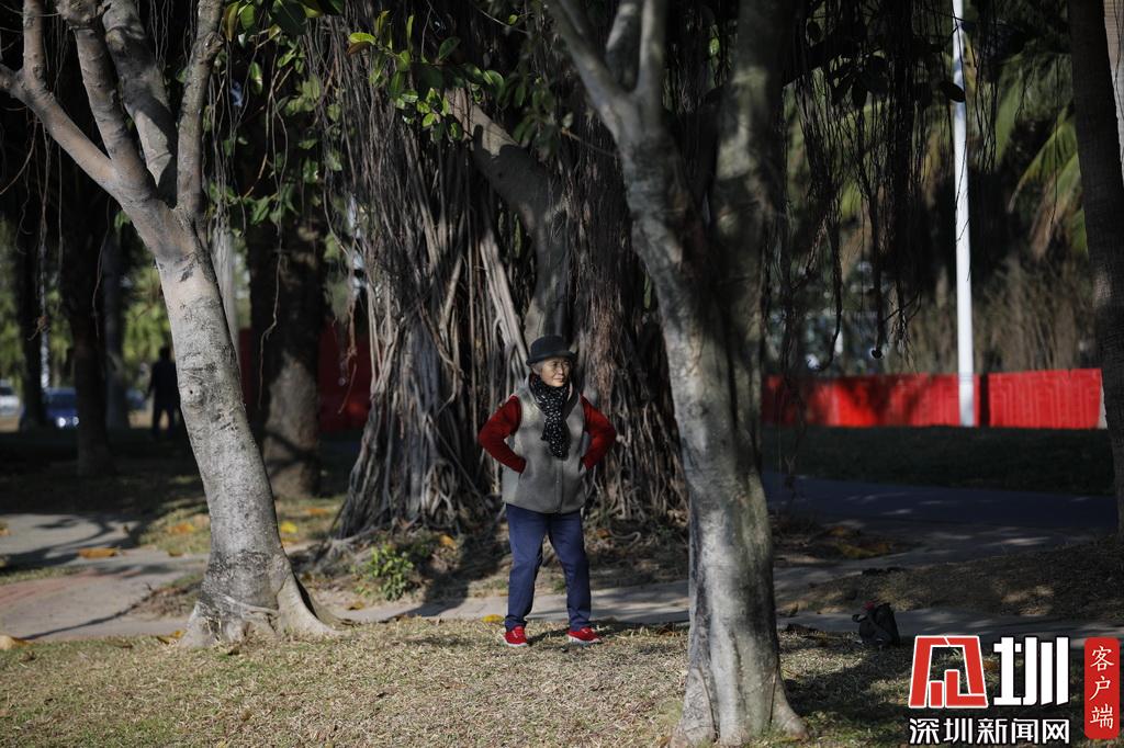 一位在深圳灣晨練的市民。