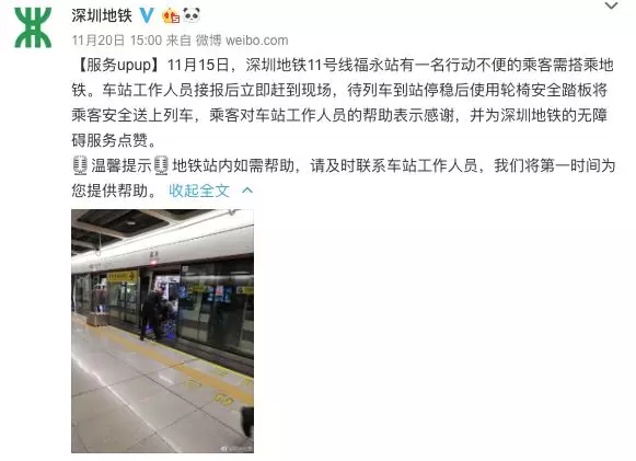 需要坐輪椅的乘客上地鐵時