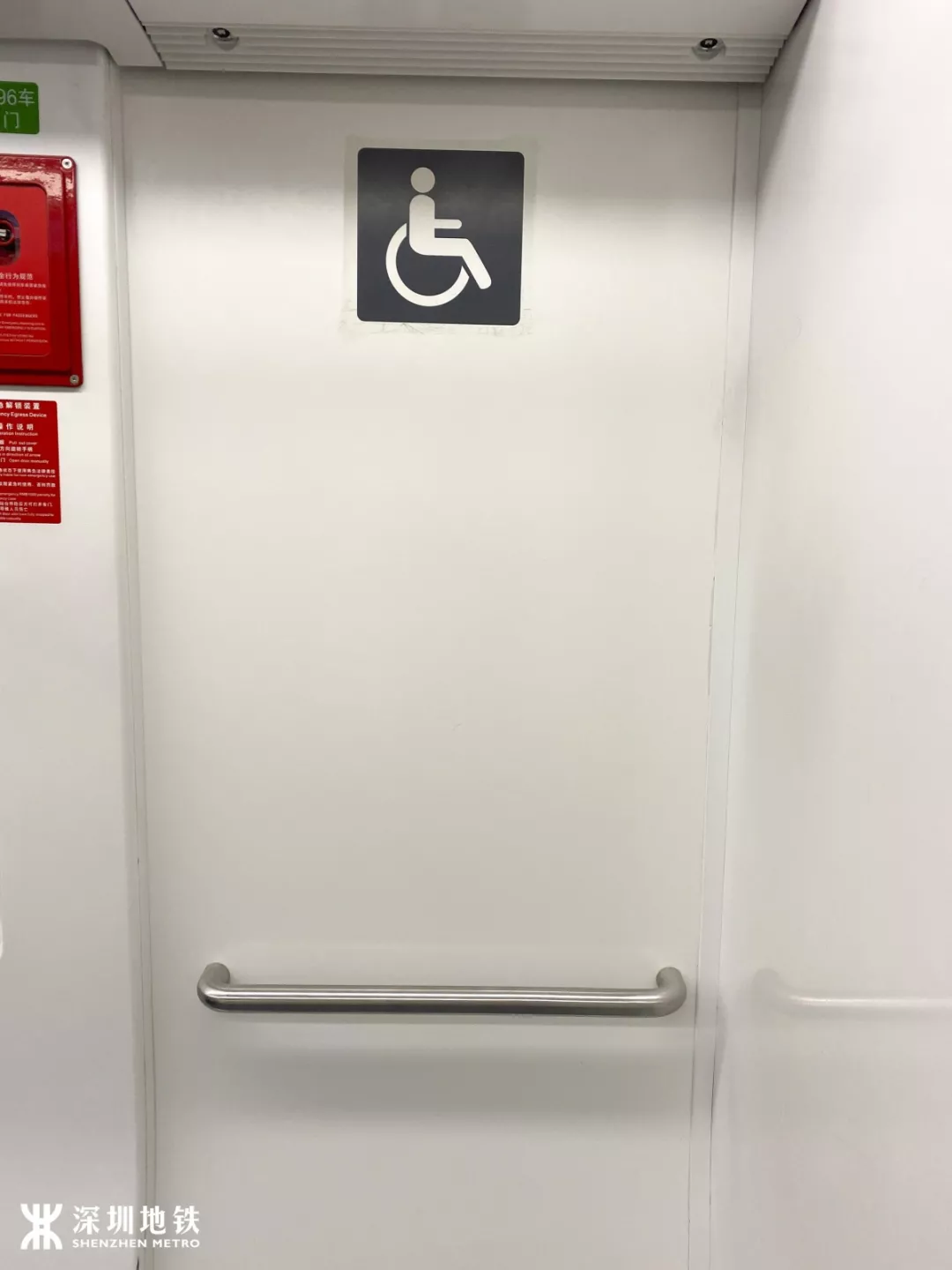 在每一輛列車內(nèi)部,相應(yīng)的位置都貼有輪椅乘車標識,如果乘車時遇見殘疾人士,移開你的腳步,他們比你更需要這個位置。