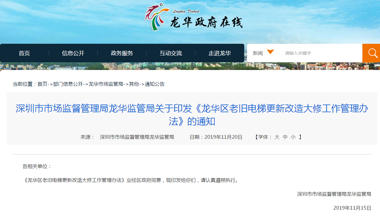 老舊電梯更新每臺補貼最高20萬!符合條件的單位可向深圳市市場監(jiān)督管理局龍華監(jiān)管局聯(lián)系報名,報名截止時間為:2019年12月13日。