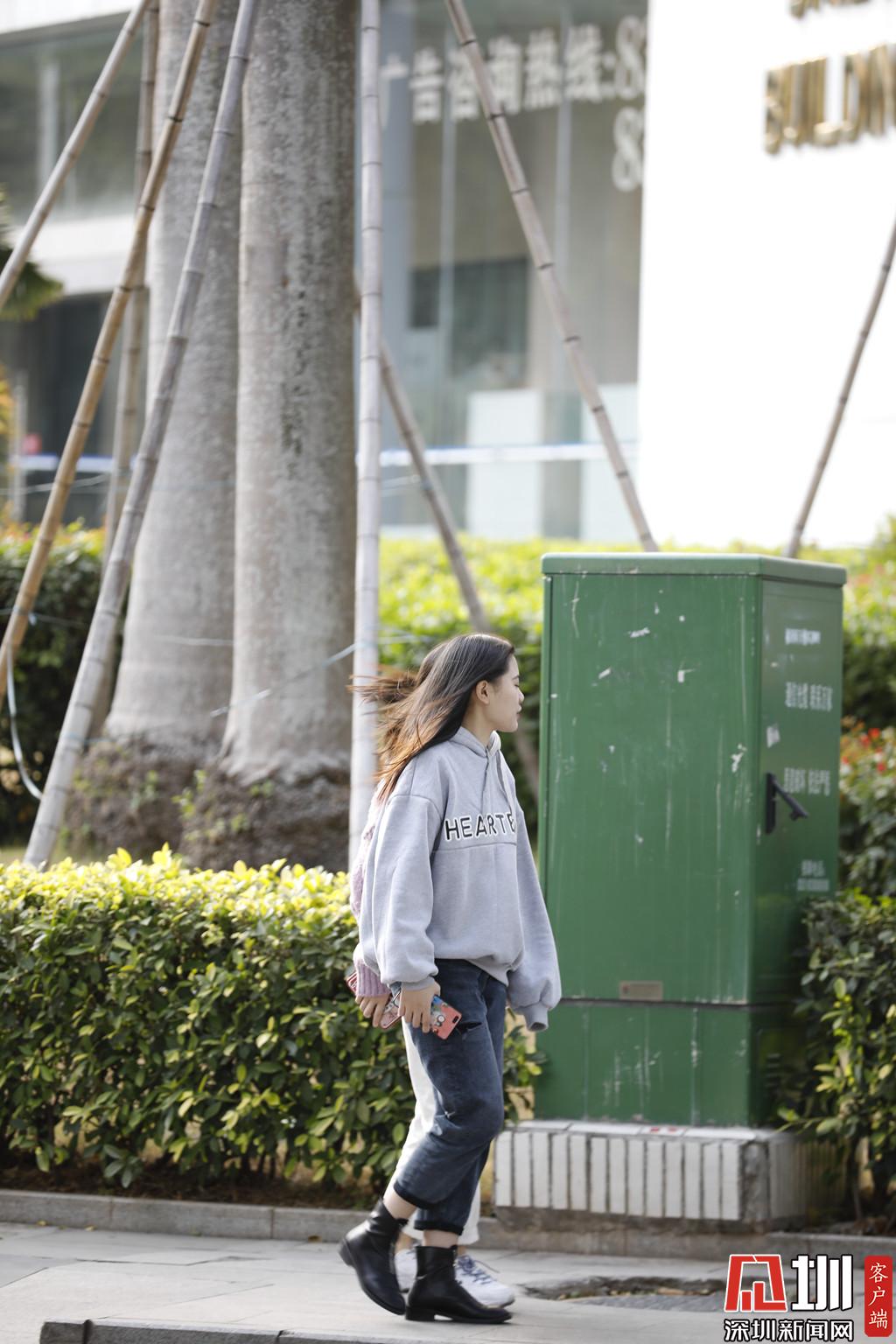 福田區(qū),一位穿休閑裝出行的市民。