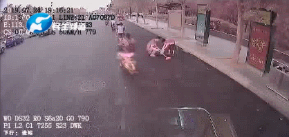 車流中,這個(gè)彎腰的小男孩,