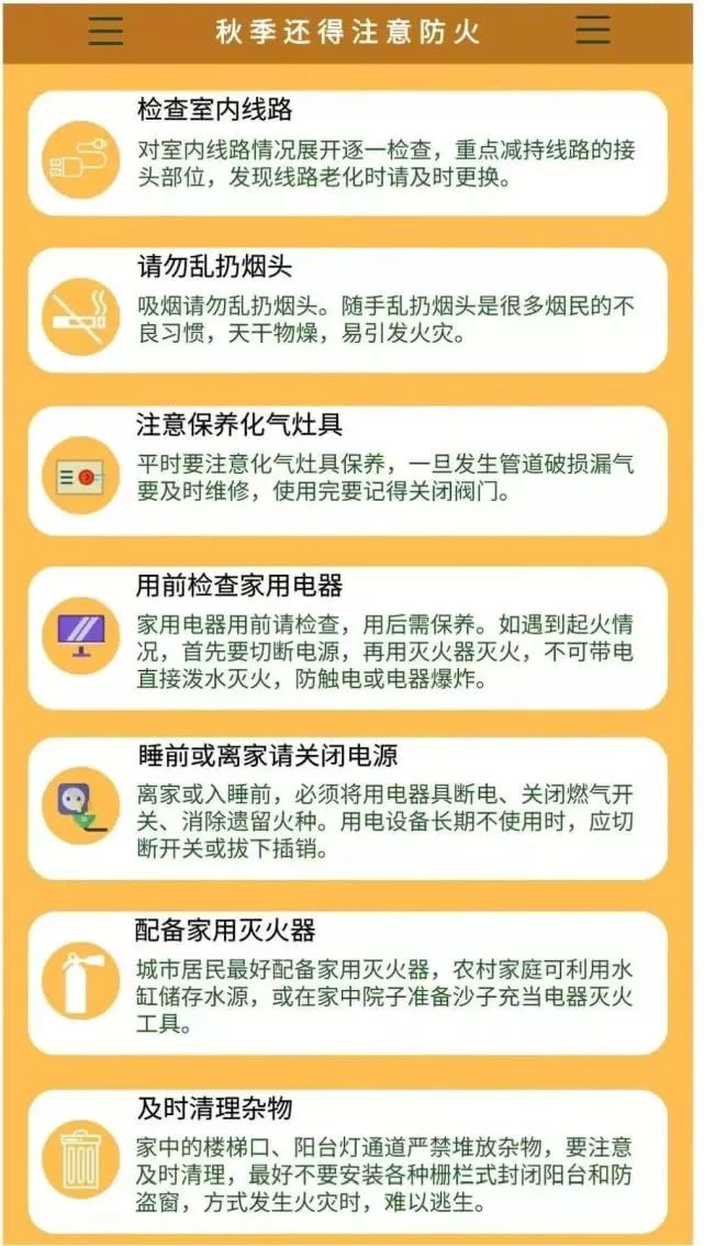 需注意森林防火和家居用火安全!