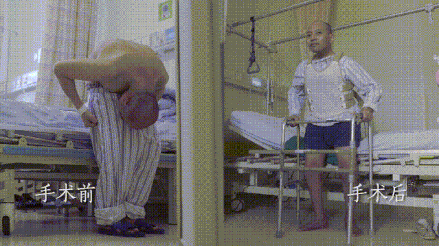 牽動(dòng)全院人心的第三次手術(shù)在9月18日進(jìn)行。這一步要將李華彎成C字型的脊柱拉直。手術(shù)進(jìn)行了幾乎一天,醫(yī)生們找準(zhǔn)脊椎最彎曲的兩處地方,截?cái)?,重新拼接成直線。手術(shù)完成后當(dāng)天晚上,李華20年來(lái)第一次能躺平睡覺(jué)了!