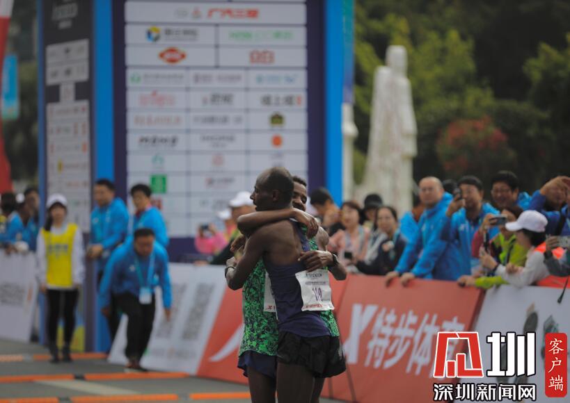 全程男子冠軍Tadese Tola Woldegeberel和第二名獲獎?wù)邠肀А?/p>