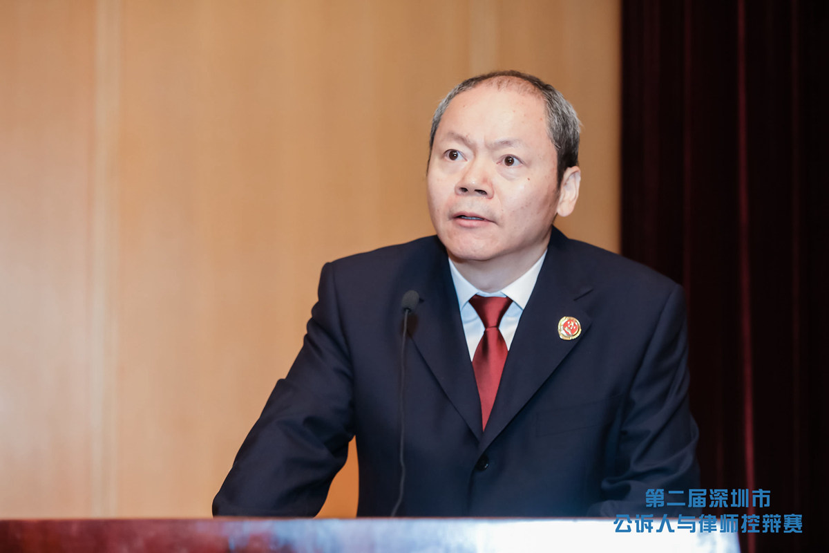 深圳市司法局局長蔣溪林在致辭中表示,今天的控辯大賽是深圳法律人的一個(gè)盛會,舉行控辯大賽是為了增進(jìn)法律職業(yè)共同體的相互了解,特別是在履職過程中,大家能夠站在彼此的立場上,共同為維護(hù)法律尊嚴(yán)和社會公平正義共同努力。