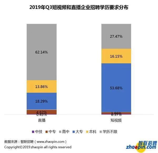 短視頻工作對(duì)人才學(xué)歷要求高于直播