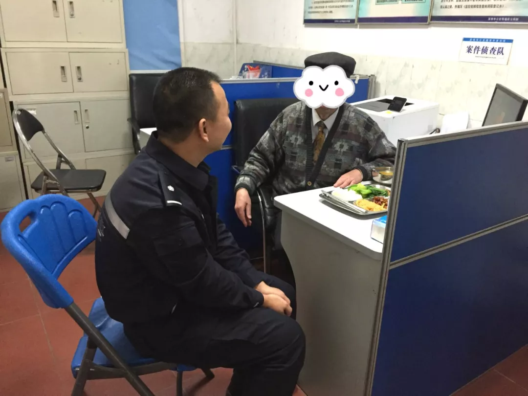 老人與派出所值班民警王研軍講述了自己前來(lái)的目的,看見老人一臉疲態(tài),王研軍立即安排地方給老人休息,并安排輔警吳海明供應(yīng)午餐給老人食用。