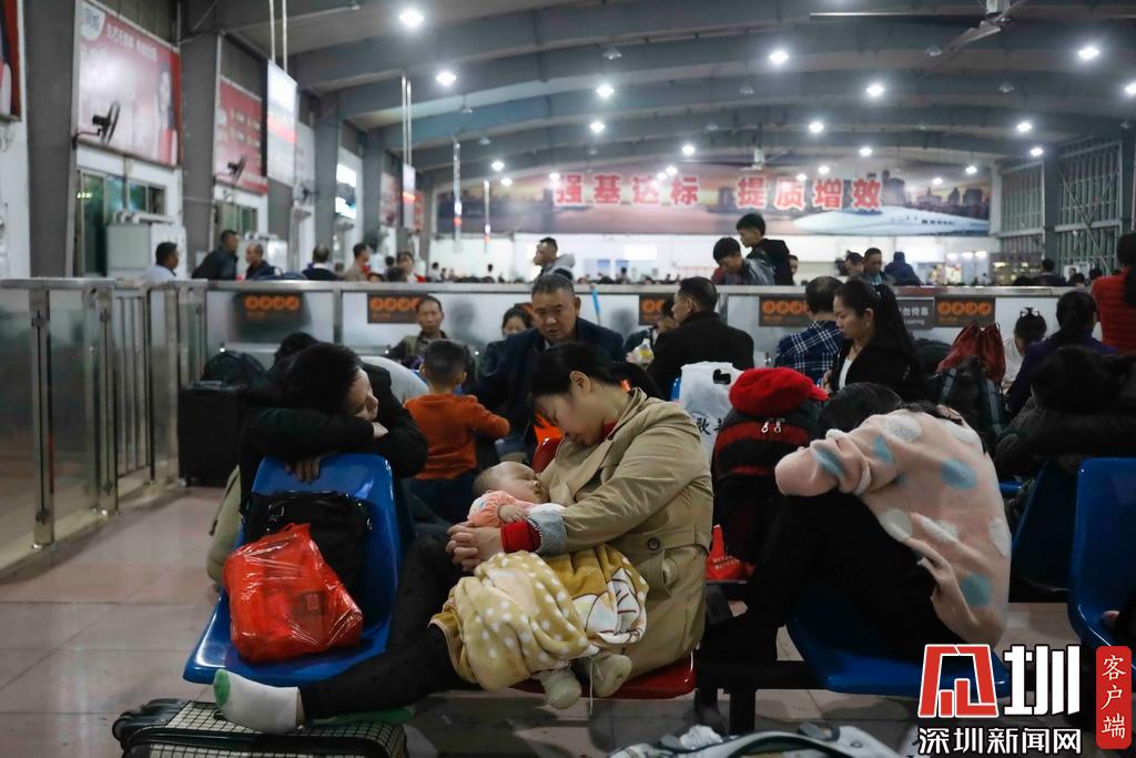 1月9日晚,深圳西站候車室坐滿候車乘客。
