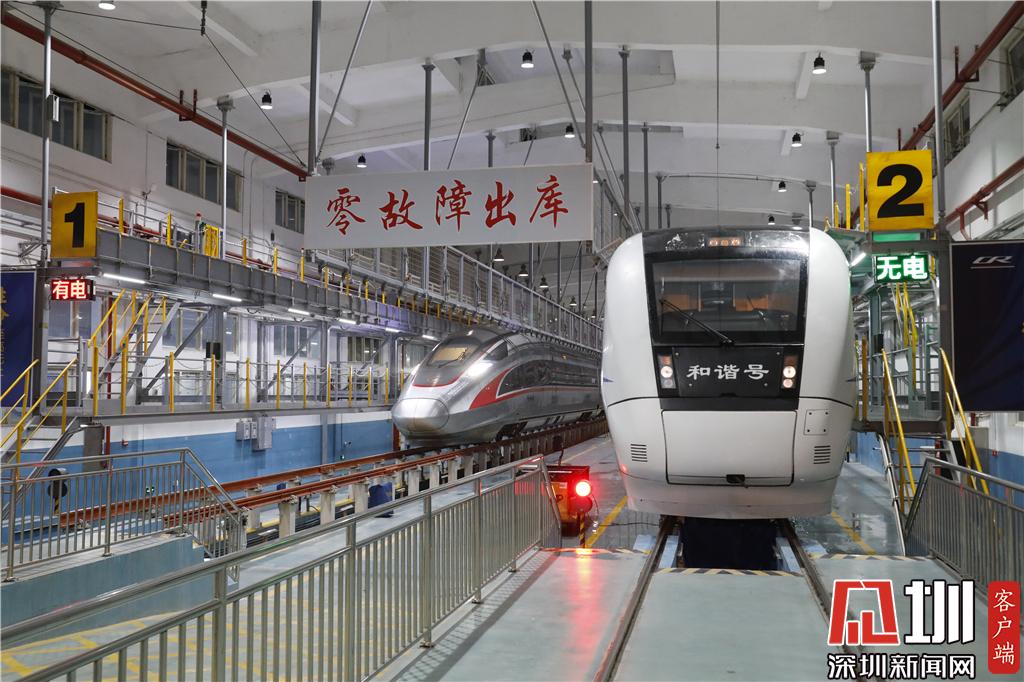 新春走基層|探秘春運(yùn)里的深圳動(dòng)車所 高鐵列車排隊(duì)"體檢""洗澡"