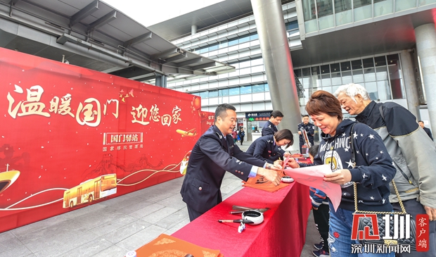 見(jiàn)圳客戶端·深圳新聞網(wǎng)2020年1月22日訊(見(jiàn)圳客戶端、深圳新聞網(wǎng) 記者 張玲 通訊員 劉姝夢(mèng))巍巍國(guó)門彰顯大國(guó)風(fēng)范,涓涓暖流展現(xiàn)為民情懷。不辭風(fēng)雪的歸鄉(xiāng)路上,國(guó)門——就是您的第一道家門。根據(jù)國(guó)家移民管理局統(tǒng)一部署,2020年1月17日至2月1日,深圳邊檢總站積極開(kāi)展“溫暖國(guó)門迎您回家”主題活動(dòng),在各口岸出入境現(xiàn)場(chǎng)設(shè)置“國(guó)門驛站”,擺放“國(guó)門同框”合影墻、“家國(guó)情懷”留言板,點(diǎn)綴體現(xiàn)中國(guó)年的傳統(tǒng)文化元素表達(dá)祝愿,著力提升廣大出入境人員特別是歸國(guó)返鄉(xiāng)人員的獲得感、幸福感和歸屬感,各口岸沉浸在濃濃的年味里。
