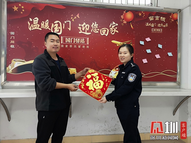 沙頭角邊檢站特別拍攝春節(jié)宣傳片,在口岸多個(gè)場(chǎng)地播放,營(yíng)造“年”的氛圍,為出入境旅客送上小燈籠、“?!弊值刃《Y品,與旅客在執(zhí)勤現(xiàn)場(chǎng)合影,并當(dāng)場(chǎng)打印出照片贈(zèng)與留念,讓每一位歸家的游子第一時(shí)間感受到祖國(guó)的溫暖和春節(jié)的幸福。