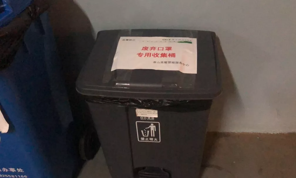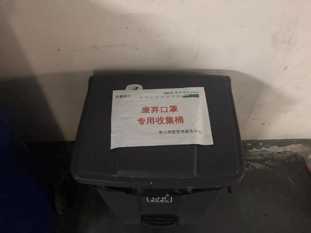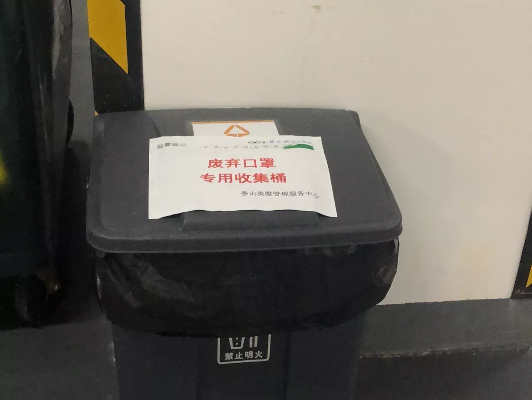 為防止廢棄口罩造成二次污染,管理服務(wù)中心在每棟樓宇垃圾集中收集點(diǎn)處,增設(shè)了“廢棄口罩專用收集桶”規(guī)范處理廢棄口罩;并要求工作人員每天對(duì)收集桶消毒加強(qiáng)防護(hù)。