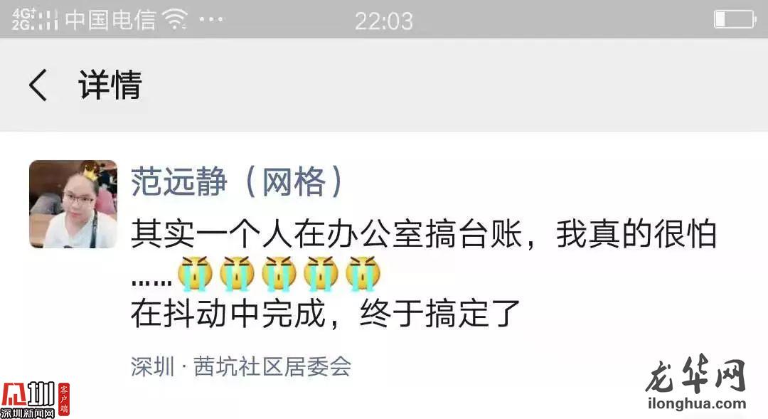 龍華區(qū)福城街道茜坑社區(qū)網(wǎng)格站資料員范遠(yuǎn)靜被凍得瑟瑟發(fā)抖,但停不下手里的活,不斷地整理、更新手中的湖北籍,特別是武漢籍社區(qū)人員離、返深信息,每天將前線(xiàn)網(wǎng)格員們辛苦采集到信息制作成臺(tái)賬,以保證在第二天早上六點(diǎn)前能上報(bào)給街道,用心做好社區(qū)疫情防控幕后工作,保障社區(qū)居民安全。